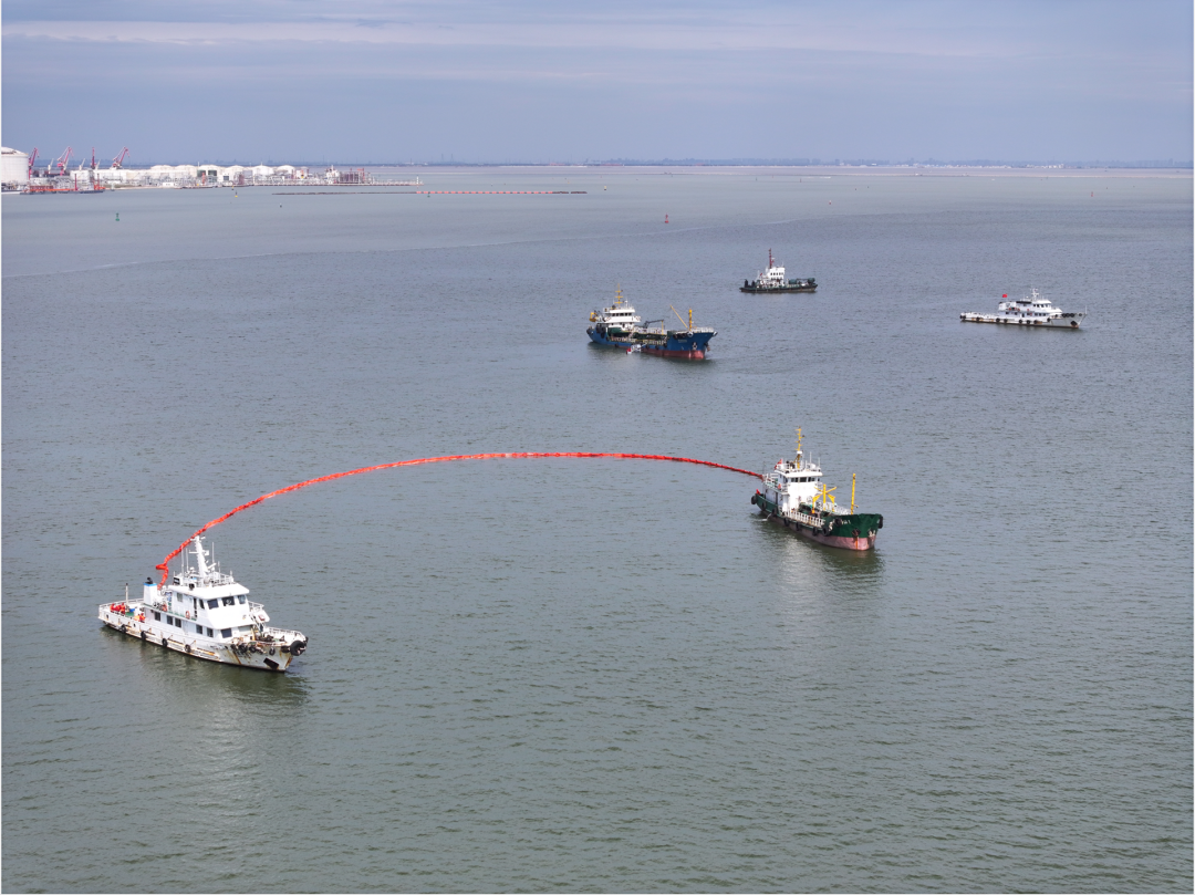 演练模拟南港工业区内企业浮顶罐区发生火灾爆炸导致危化品泄漏,消防废水外溢;同时,爆炸造成厂区外围危化品输送管廊发生泄漏,引发陆源环境污染,并对近岸海域环境构成威胁。事件发生后,三地迅速启动应急联动机制,依据《京津冀水污染突发事件联防联控合作协议》,立即开展联合会商、联合监测、联合处置、联合信息发布,充分发挥“陆海统筹”协同应急作战能力,成功处置该起突发环境事件。